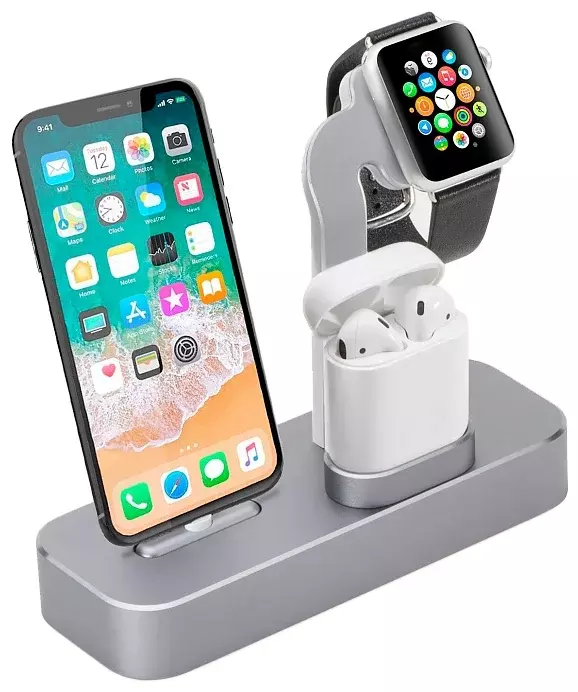 COTEetCI Base19 CS7201-GY представляет собой стильную и компактную док-станцию сразу для трех гаджетов от Apple. На небольшой, но устойчивой платформе вы с комфортом разместите свой iPhone, умные часы Apple Watch и даже беспроводные наушники AirPods в зарядном кредле. Помимо удобного размещения девайсов под небольшим углом, док-станция также позволяет осуществлять их одновременную подзарядку.